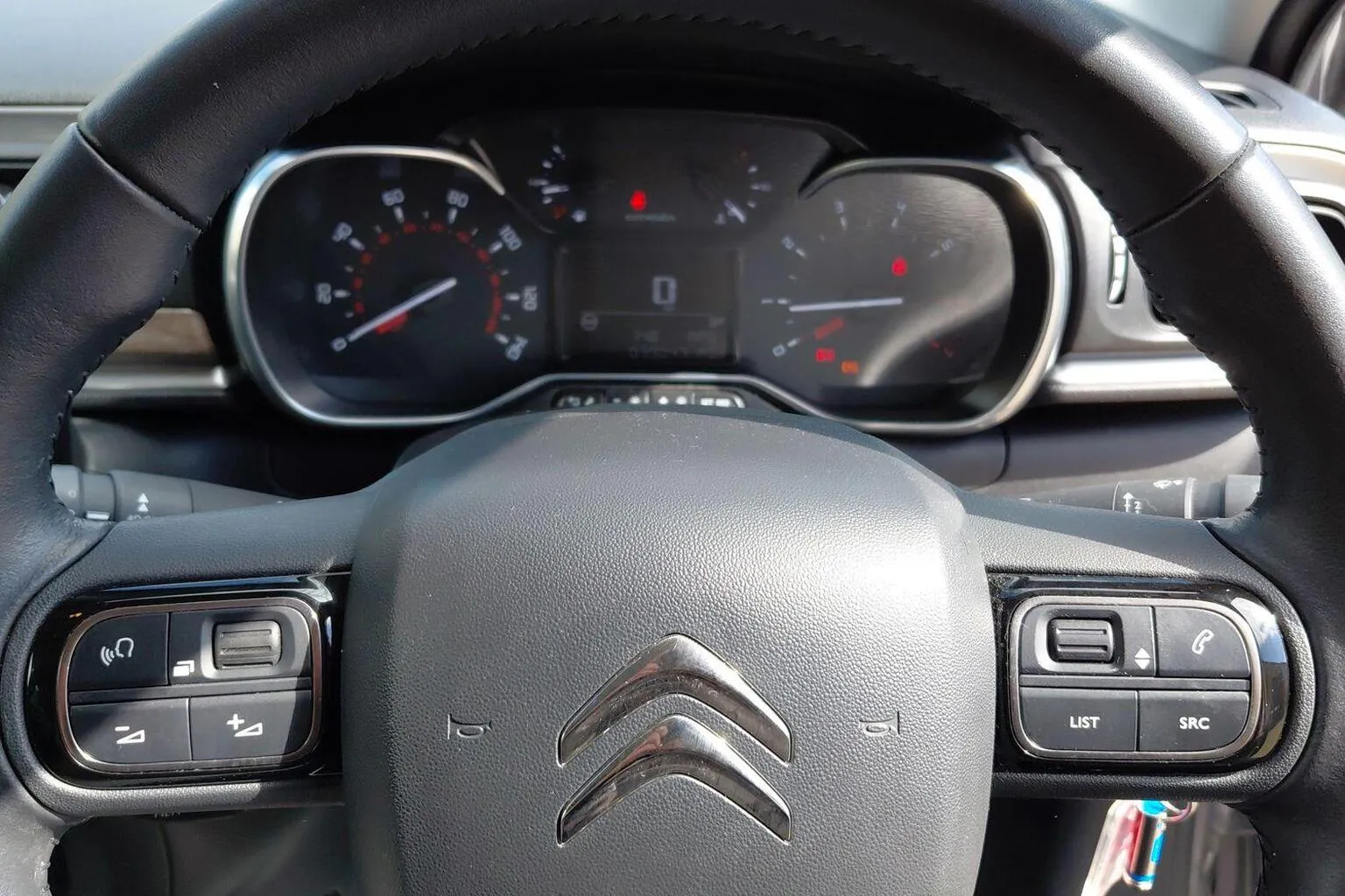- Leather Steering Wheel with Gloss Black and Satin Chrome Elements and Audio-Telephone Controls