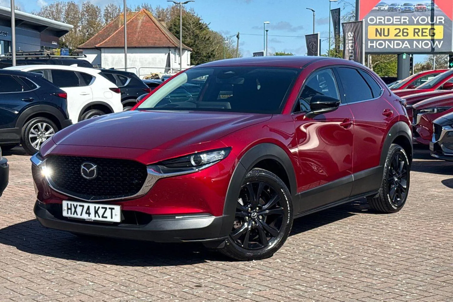 This Mazda CX-30 available from Yeomans Mazda Worthing has a 2.5 litre Mild Hybrid engine, 6 Speed Manual Gearbox and finished in Red.
