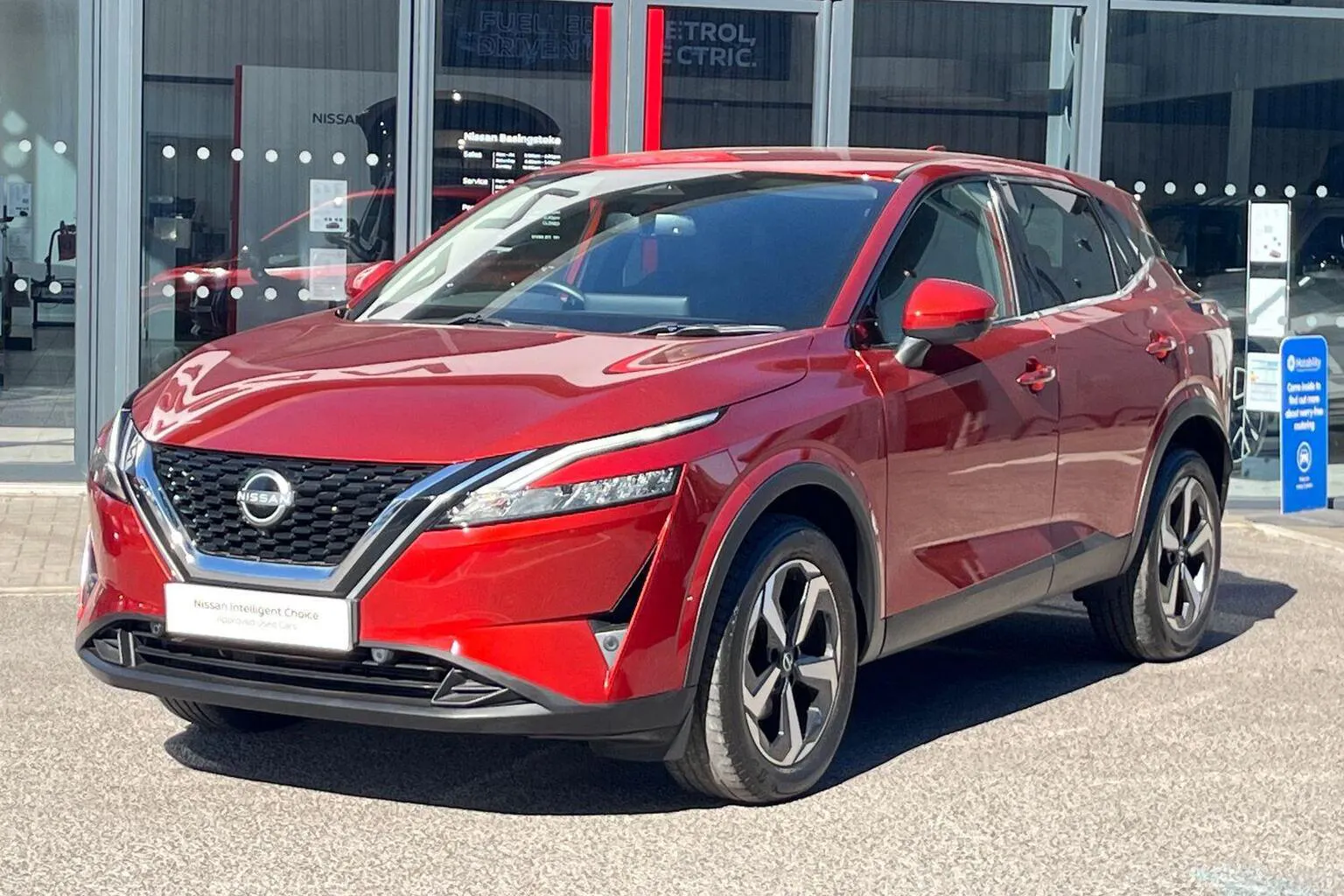 This Nissan Qashqai available from Yeomans Nissan Basingstoke has a 1.3 litre Mild Hybrid engine, 6 Speed Manual Gearbox and finished in Red.