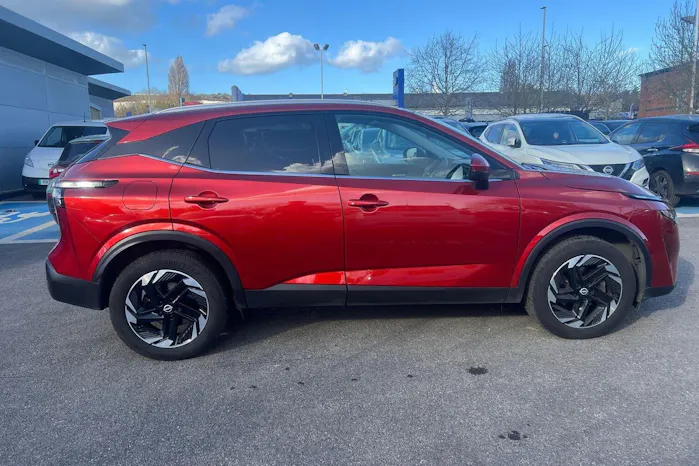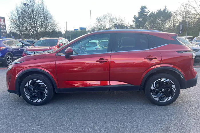 This Nissan Qashqai available from Yeomans Nissan Portsmouth has a 1.3 litre Mild Hybrid engine, 7 Speed Automatic Gearbox and finished in Red.