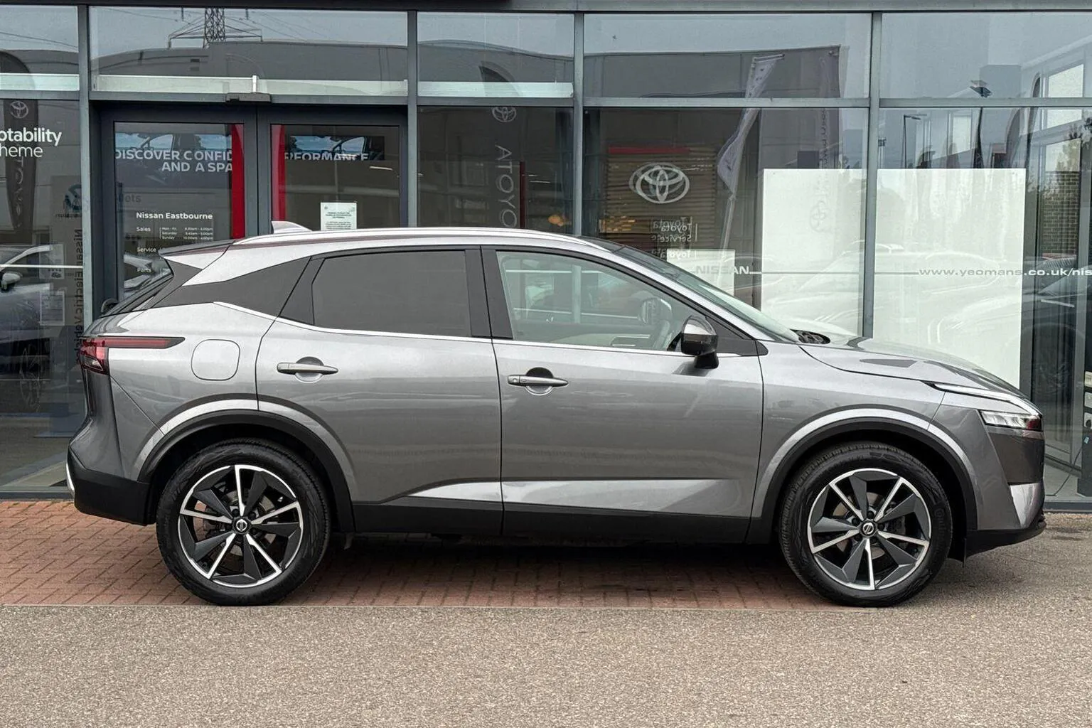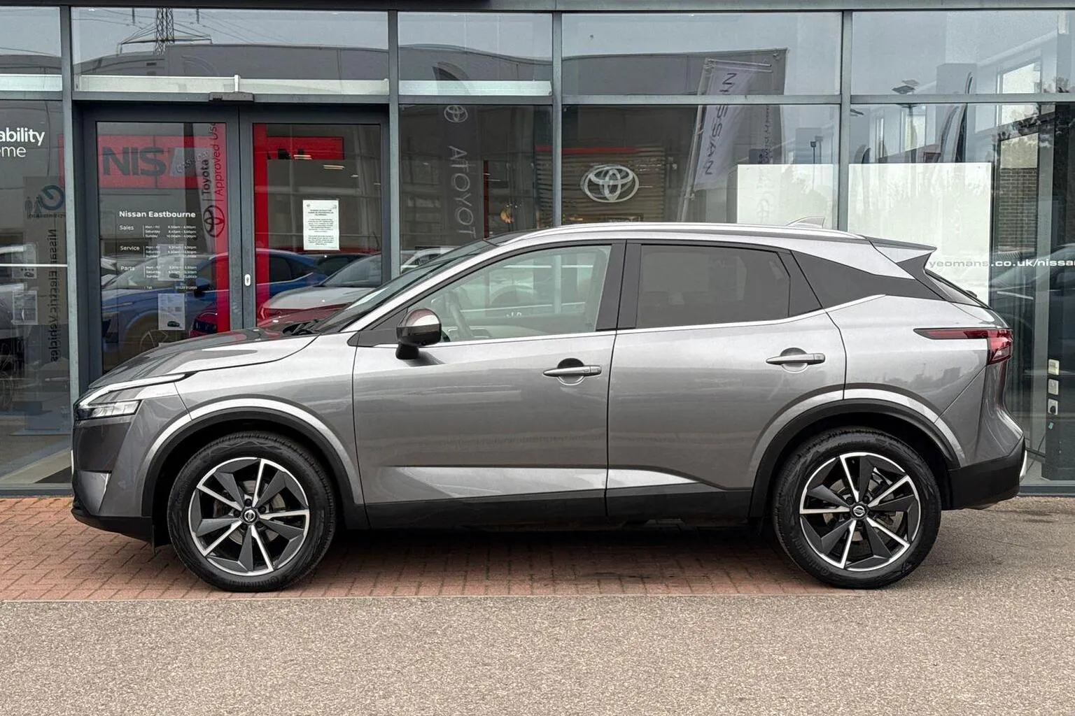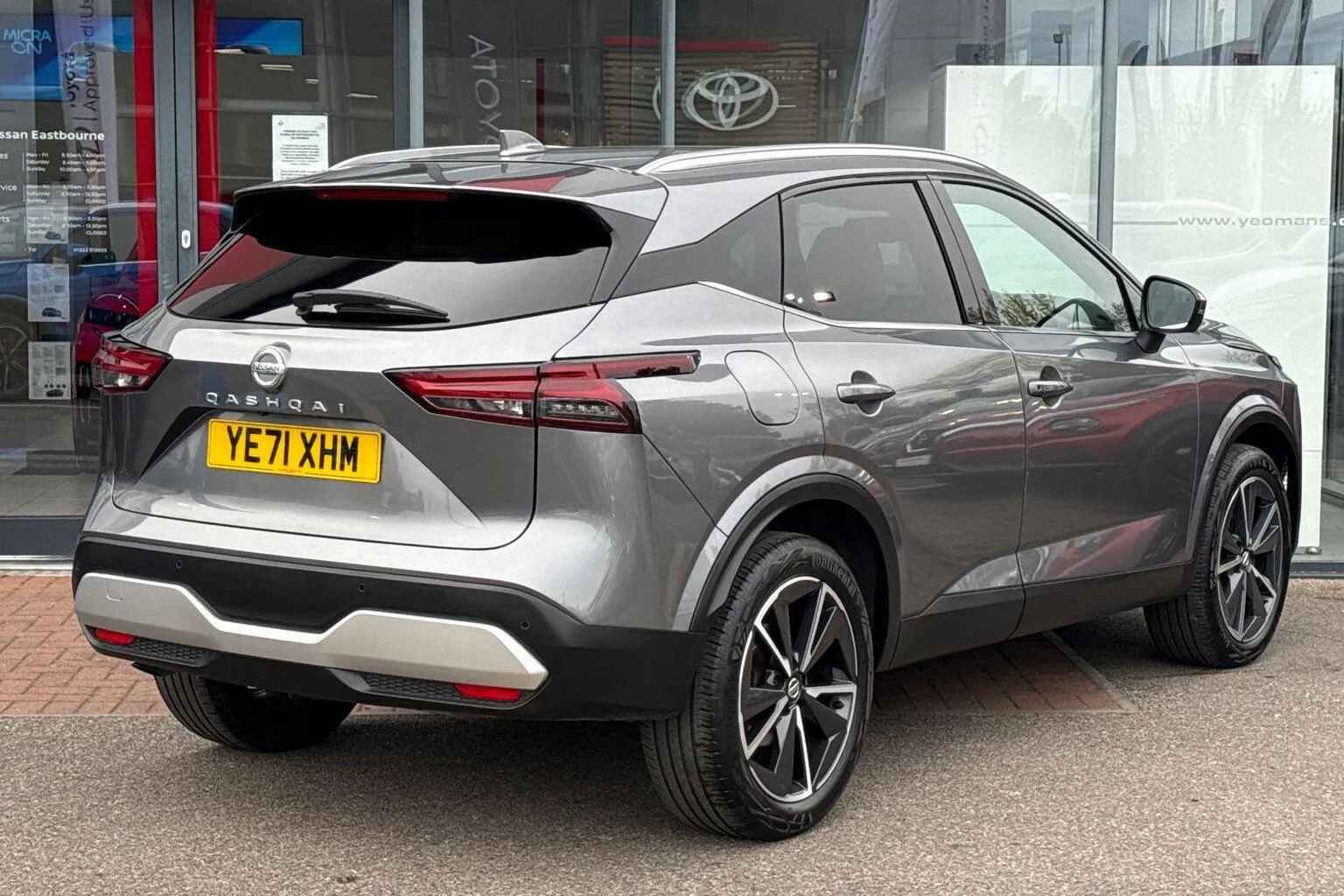 This Nissan Qashqai available from Yeomans Nissan Eastbourne has a 1.3 litre Mild Hybrid engine, 7 Speed Automatic Gearbox and finished in Grey.