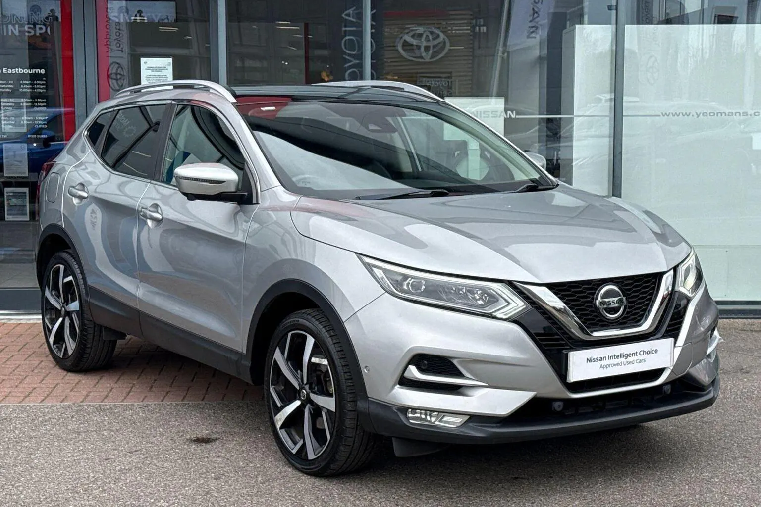 This Nissan Qashqai available from Yeomans Nissan Eastbourne has a 1.3 litre Petrol engine, 6 Speed Manual Gearbox and finished in Silver.