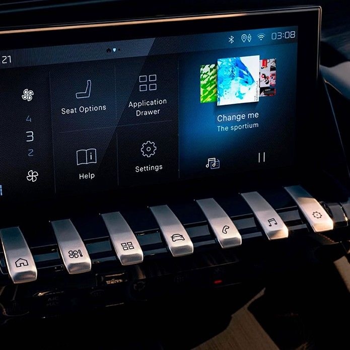 05 Safety & technology Experience luxury and safety in the New PEUGEOT 508 SW. Embrace a seamless journey with an array of driving aids that guarantee unparalleled smoothness. The semi-autonomous driving with drive assist plus pack, along with HD front and rear cameras offering 350-degree vision, ensures heightened awareness and confidence on the road. Navigate with peace of mind, thanks to the New PEUGEOT 508 SW advanced features like blind spot monitoring and night vision, providing optimised responsiveness during nighttime drives. Revel in a world of technological breakthroughs, where precise handling, elite ride comfort, and a cutting-edge three-mode adaptive suspension elevate your driving experience to new heights.