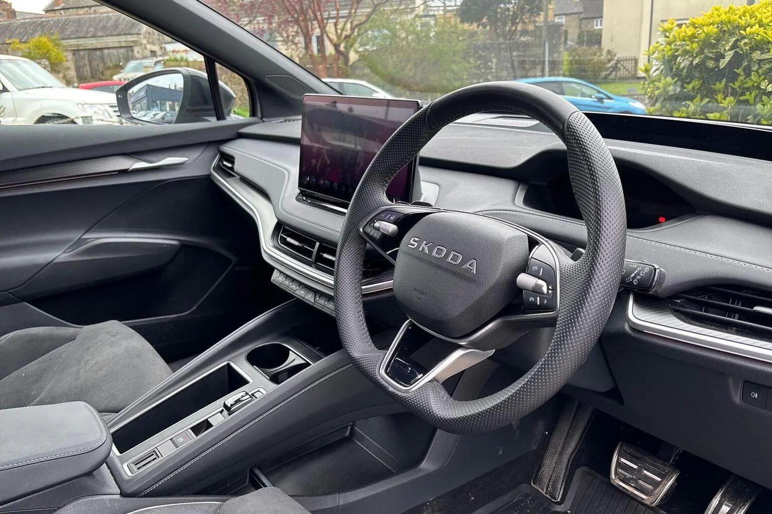 This SKODA ENYAQ iV available from Yeomans Škoda Helston has a Electric engine, Automatic Gearbox and finished in Grey.