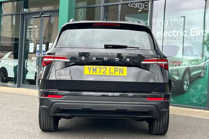 This SKODA KAROQ available from Yeomans Škoda Bridgwater has a 1.5 litre Petrol engine, 7 Speed Automatic Gearbox and finished in Black.