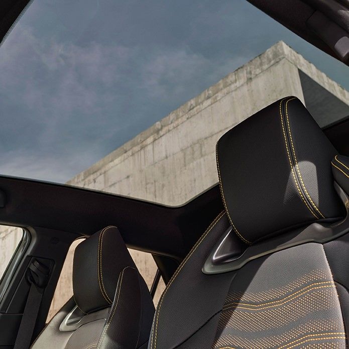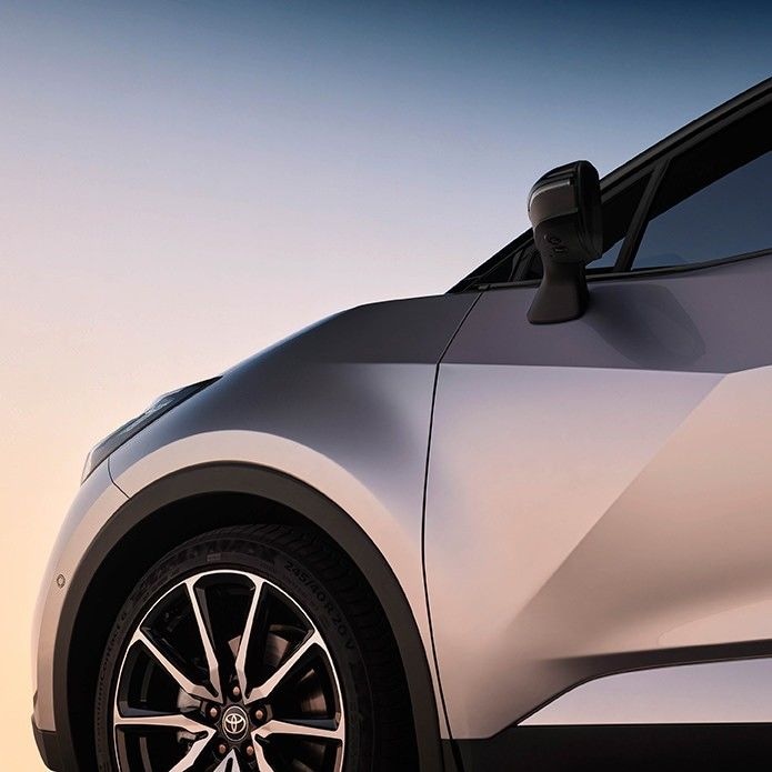 02Exterior designThe body showcases a captivating interplay of powerful, geometric shapes, crafted with precision-cut lines that imbue the design with a sense of dynamic movement. The fresh Bi-tone + paint design extends the striking black roof contrast to encompass the rear of the car, tracing the curves of the body and accentuating its expressive proportions. This captivating feature is available on selected grades. With flush door handles, 20-inch wheels and a cutting edge panoramic roof, the All-New Toyota C-HR demands attention.
