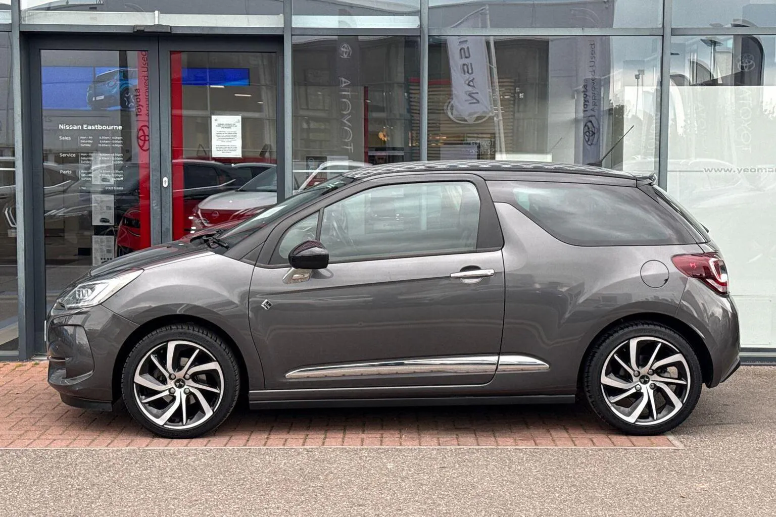 This DS 3 available from Yeomans Nissan Eastbourne has a 1.2 litre Petrol engine, 6 Speed Automatic Gearbox and finished in Grey.