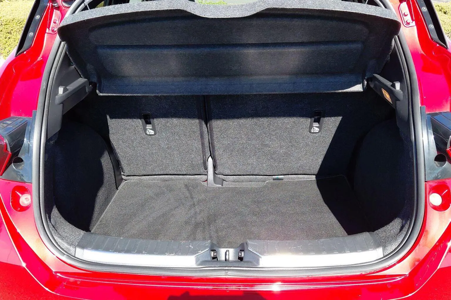 This vehicle is finished in Passion Red.