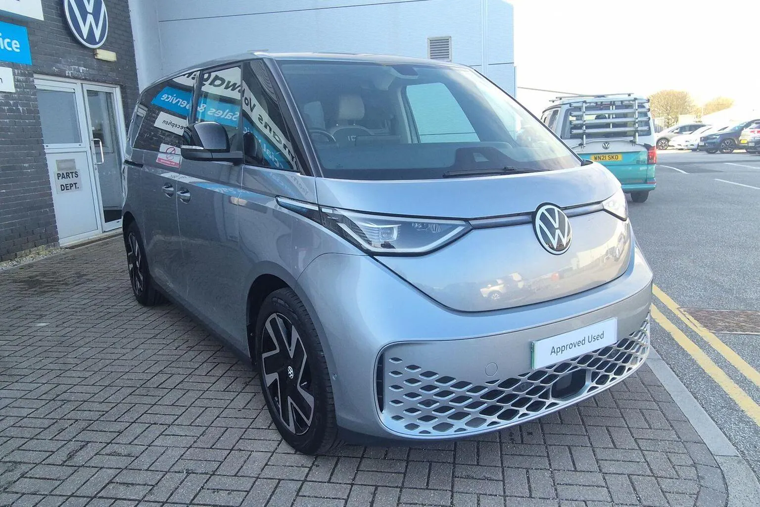 This Volkswagen ID Buzz available from Yeomans Volkswagen Van Centre Indian Queens has a Electric engine, Automatic Gearbox and finished in Silver.